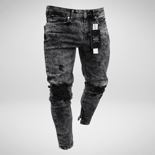Stonewash Shredded Knee Stretchy Denim Jeans