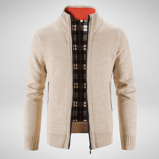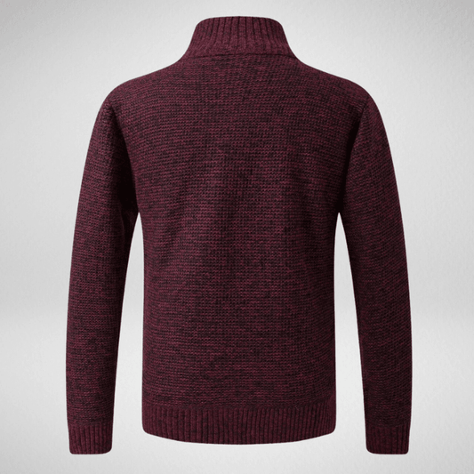 Quilted Stitched High Collar Zip-Up Wool Sweater
