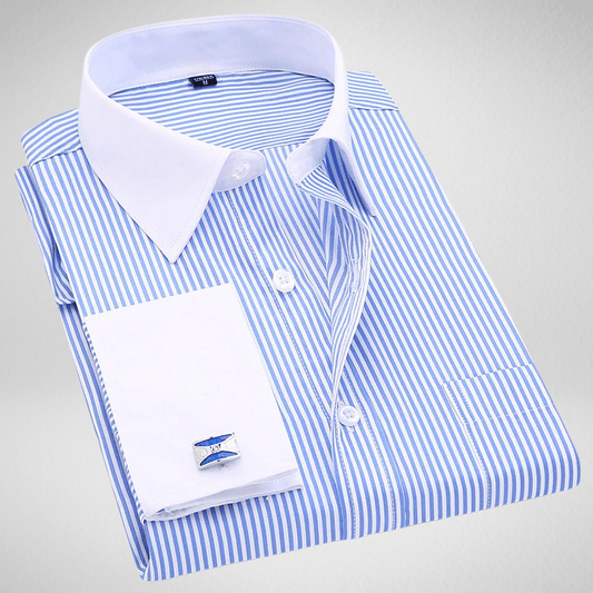 Long Sleeve Striped White Collar Formal Dress Shirt
