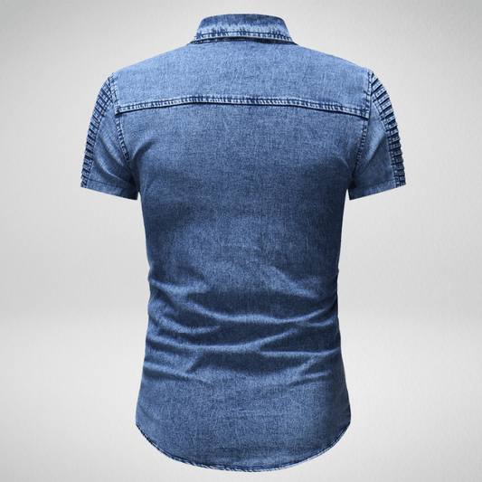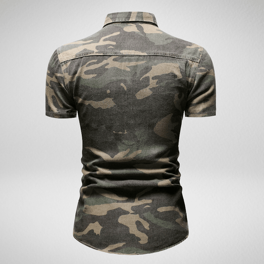 Slim-Fit Short Sleeve Denim Camouflage Shirt